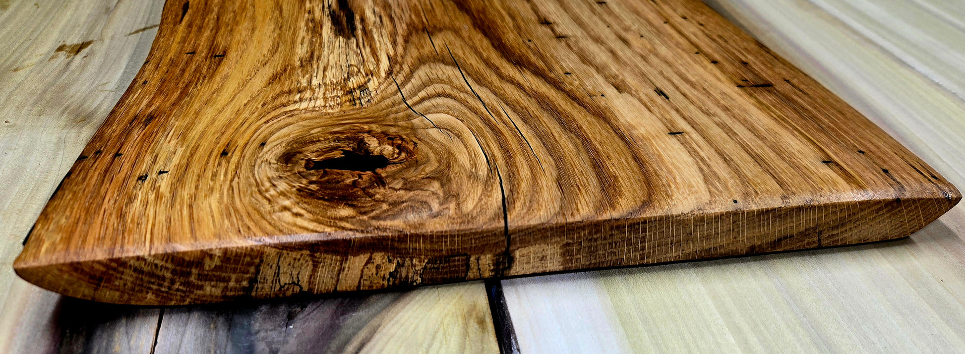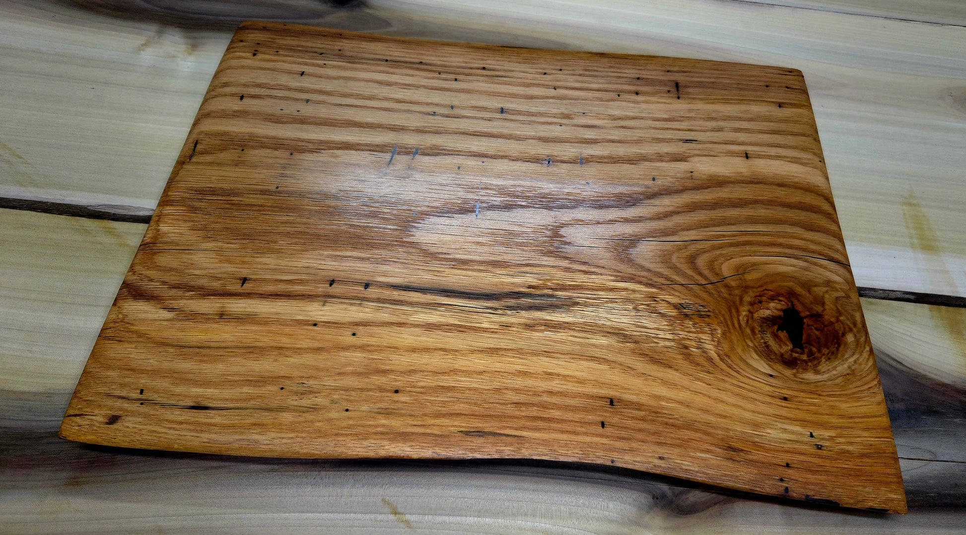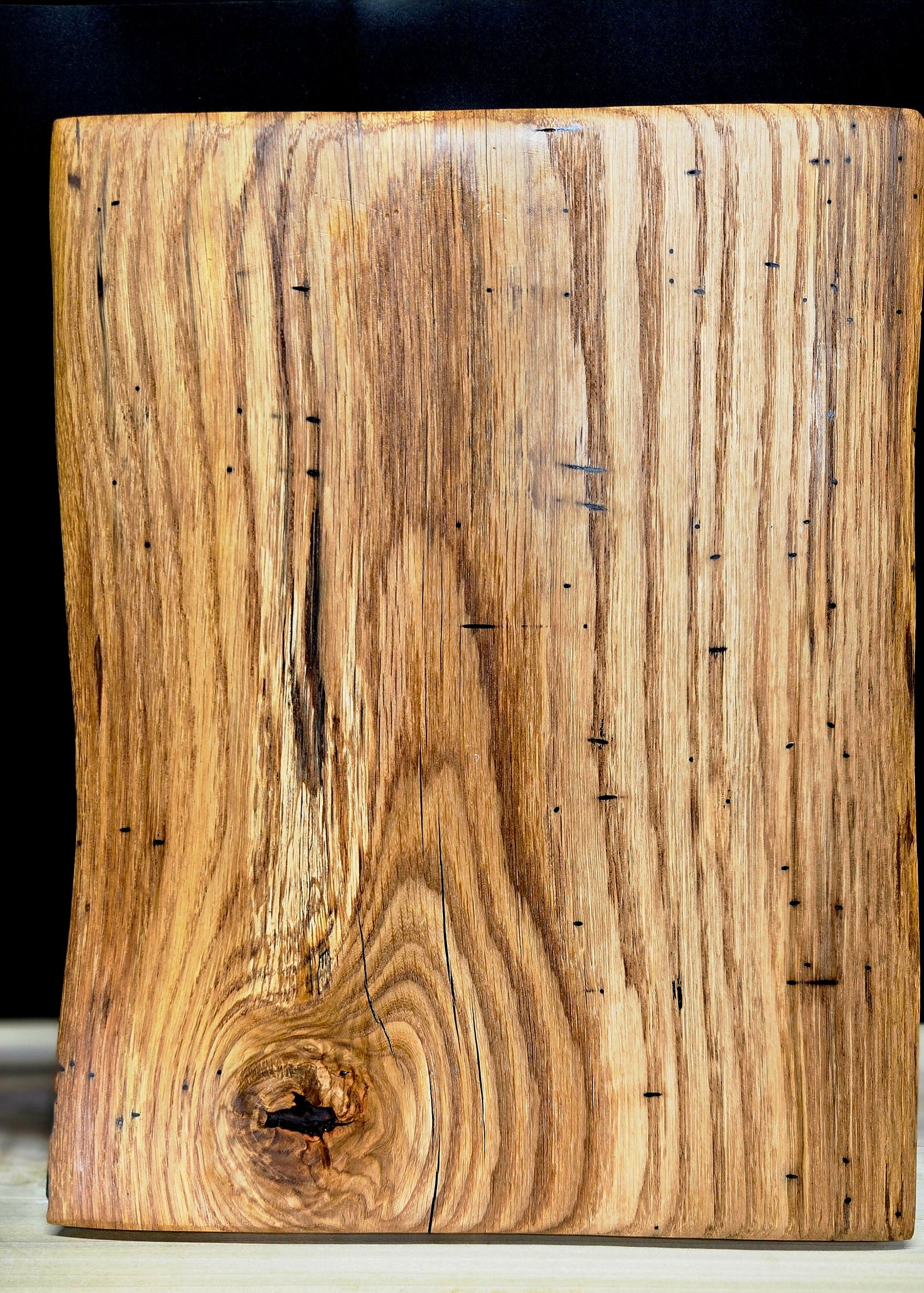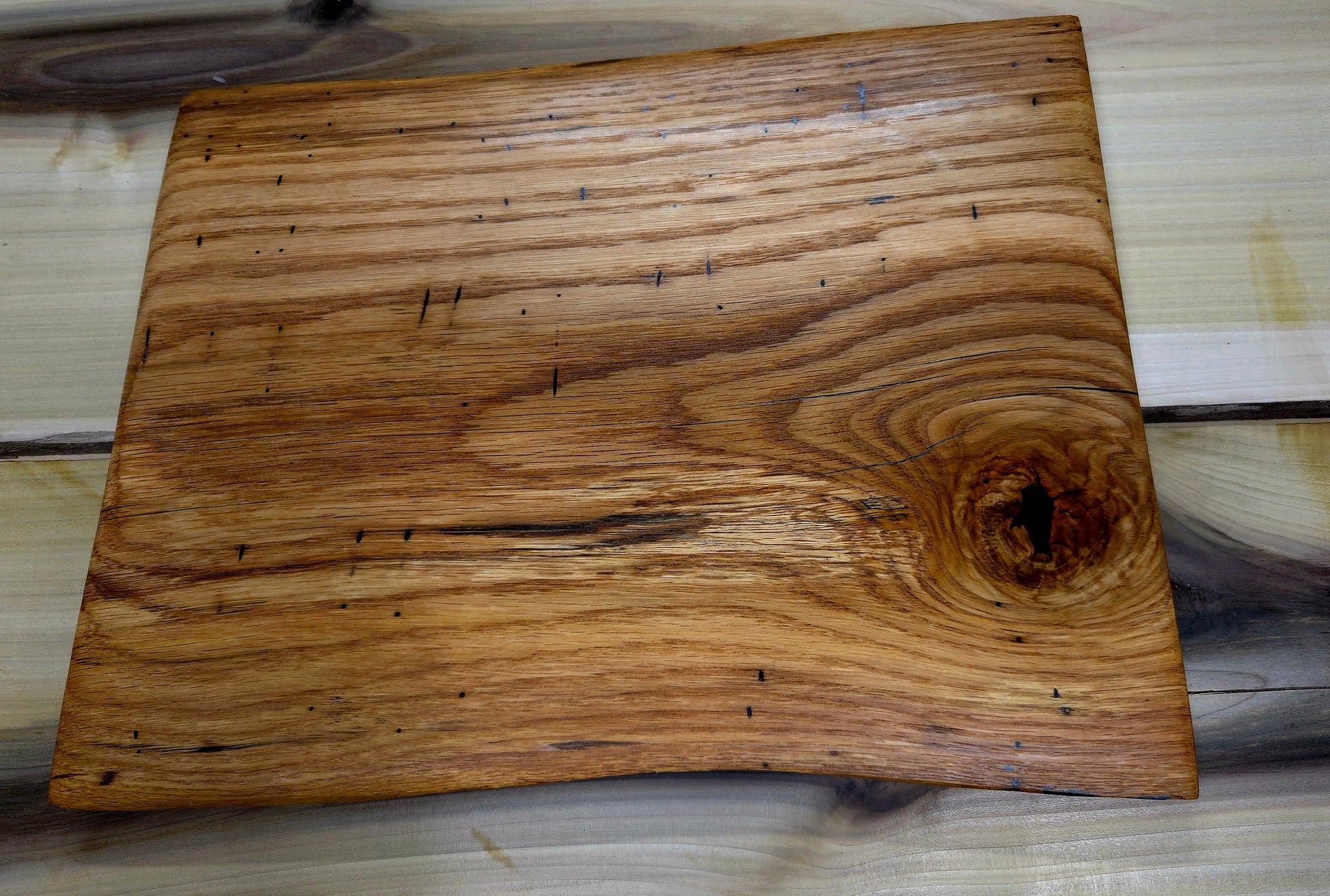 This spalted white oak cutting board has all its natural features. From the natural spalting to the natural edges, this cutting board will add rustic elegance to any kitchen. Medium size of 12"x 15". Finished with all natural food safe oils and wax. Includes care instructions.