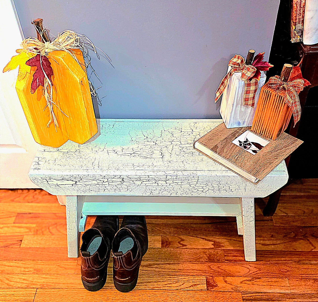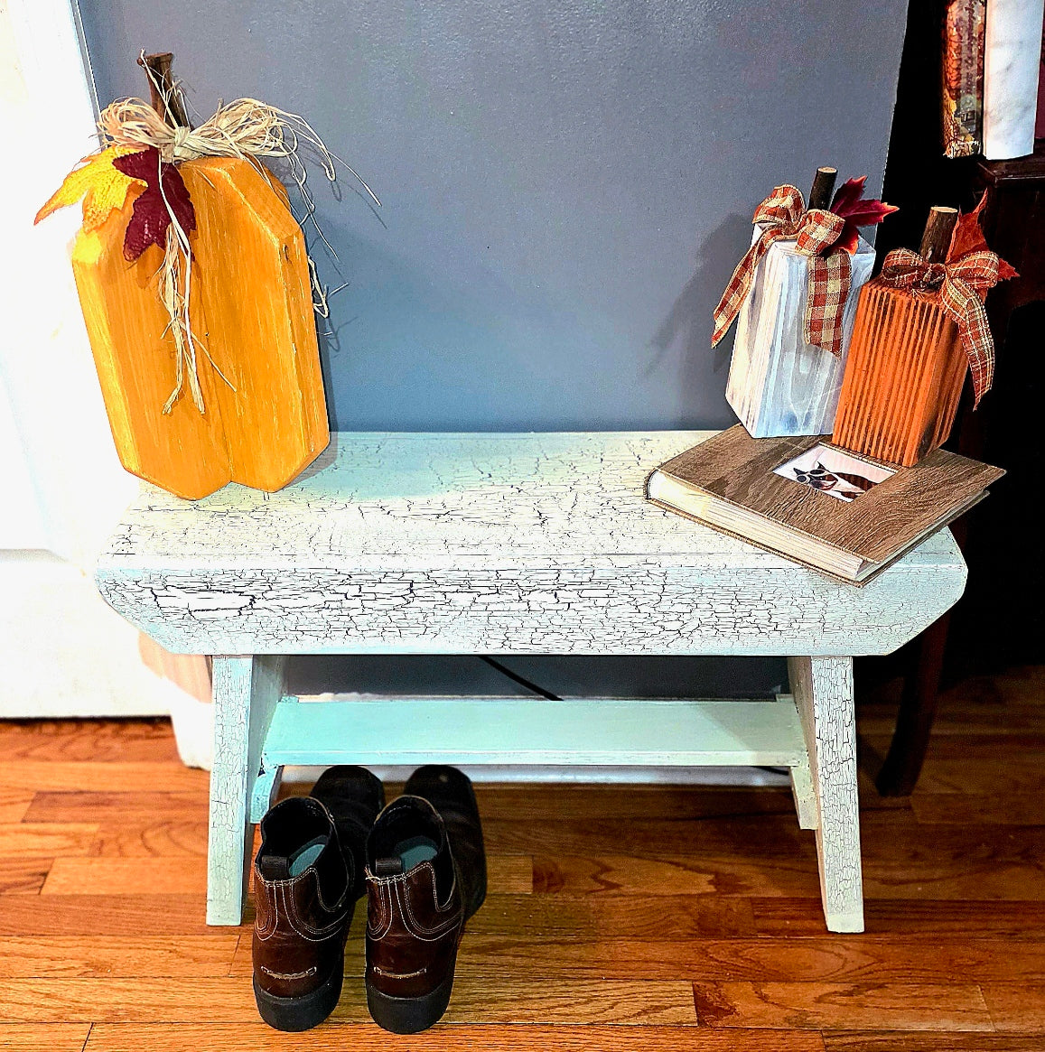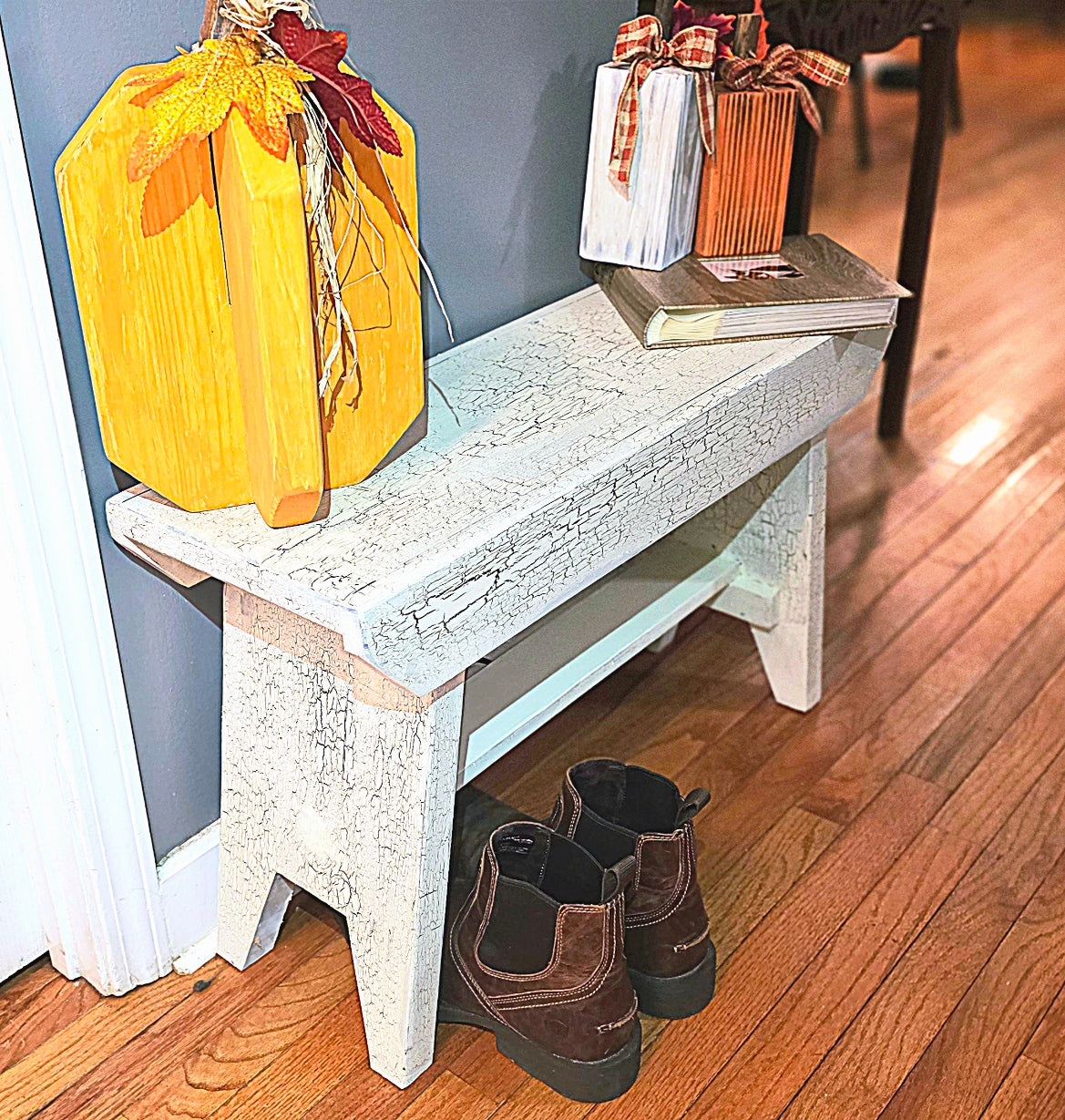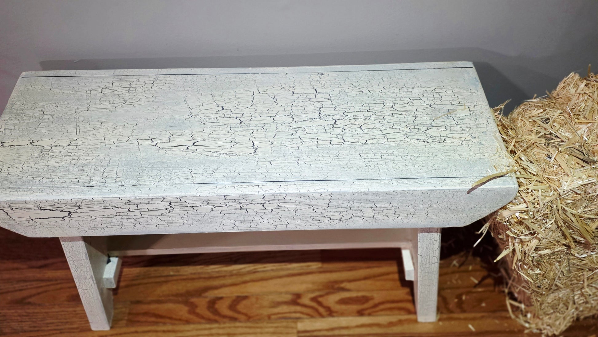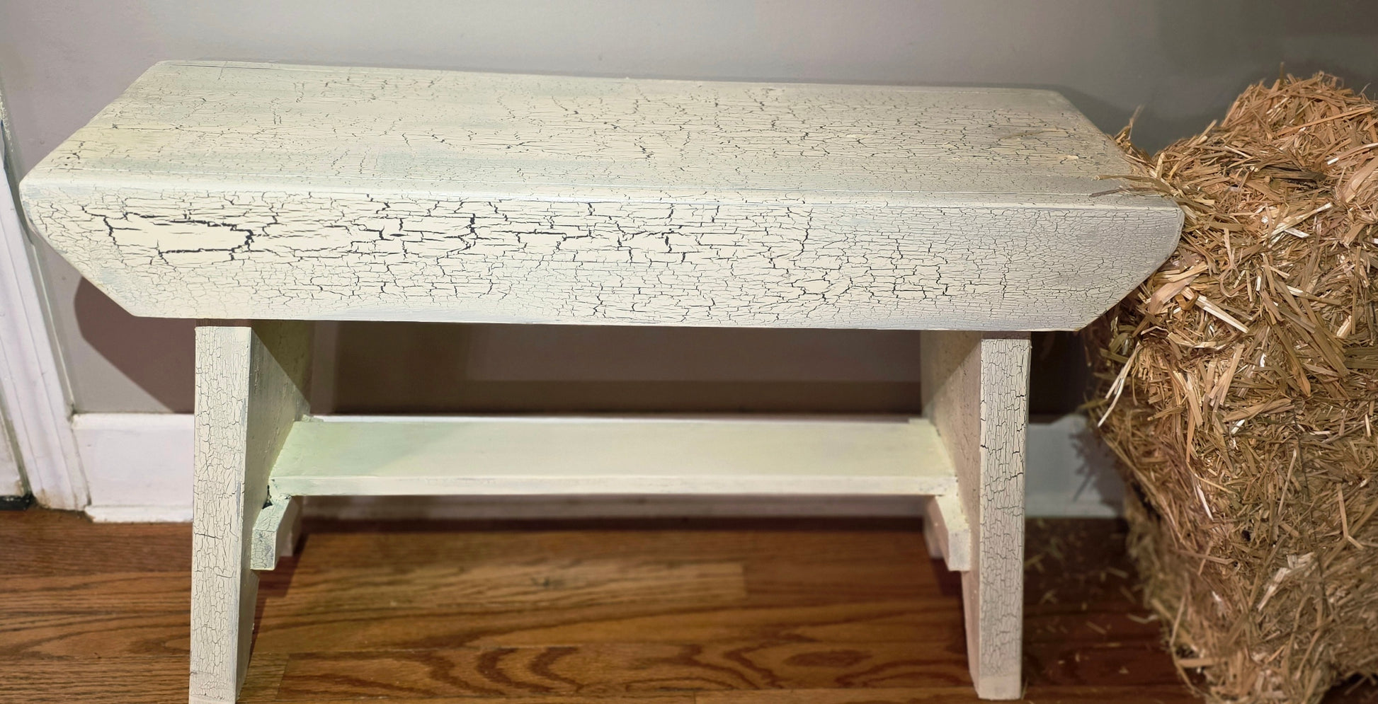 Antique White and not just for looks. This sturdy farm bench will add a touch of style and functionality to your space with a touch of rustic Americana. 30" x 19" x 12".